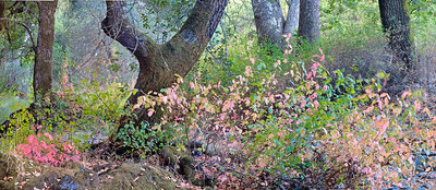 One more from my visit yesterday to Hunting Hollow. Last spring, I had a nasty run in with poison oak. I can almost forgive it now because it is so pretty in fall. I used my long lens to stay well away from and to compress the trees with the poison oak.