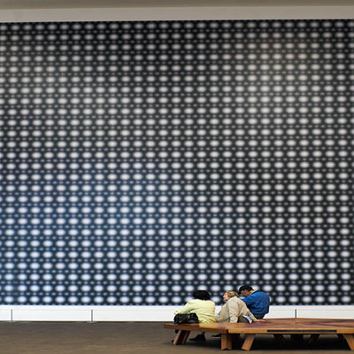 de Young Museum March 4, 2006 ~ DorothyPhoto This piece is in the main lobby of the de Young Museum. In person, the circles look a little out-of-focus but in a photo it looks like it is much further. Share this: Click to share on X (Opens in new window) X Click to share on Facebook (Opens in new window) Facebook Like Loading...