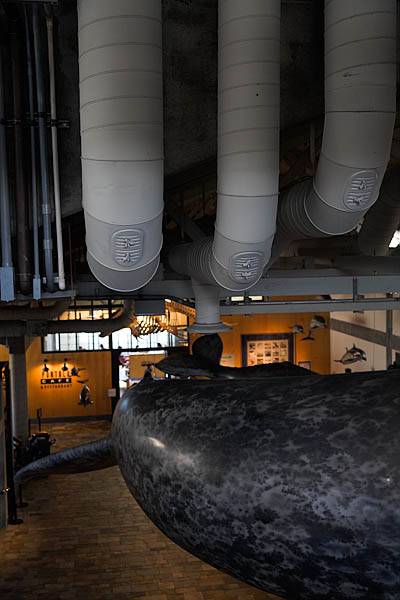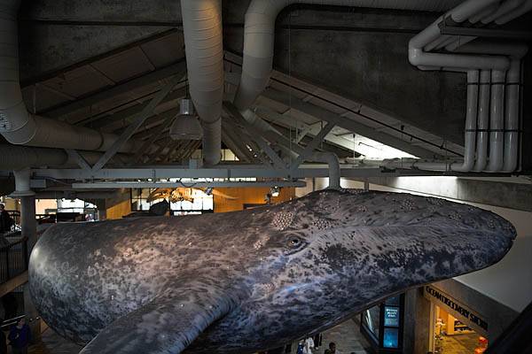 At the Aquarium, they have life-sized replicas of whales hanging from the ceiling.