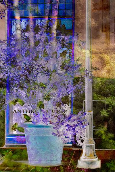 In this case, I had a ho-hum shot of a flowering bush in front of the Anthropologie store. When I inverted the image, the purples and picks appeared. Then, I worked on combining the image with this shot of birch trees with a path, http://www.dorothyphoto.com/dorothy_photo/2006/06/freeman_patters_1.html.
