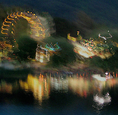 This image marks a new category. I bought a small Canon S1 to carry in my purse. These are fun shots using full auto mode and no tripod. This shot was taken from the ferris wheel and overlaid with an earlier shot when there was more light.